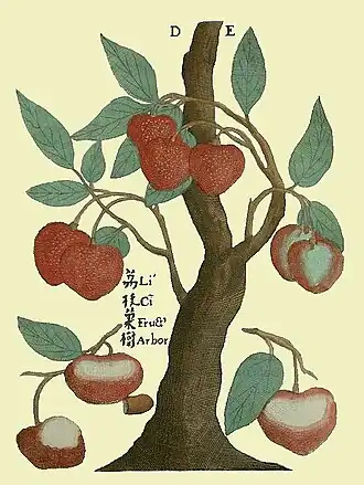 "Lechia", "lichia" e "lichi" provêm do chinês lìzhī.[2]