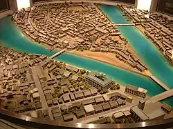 Maquete de Hiroshima antes do bombardeamento. |