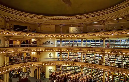 Durante os anos 1990 muitas livrarias (tanto de grandes cadeias como independentes) começaram a incluir cafés em suas lojas, relançando a tradição vienense do século XVIII, associada à república das letras. Hoje é raro ver uma livraria média ou grande sem um café dentro ou muito próximo. Além disso, grandes redes de livrarias assumiram um lado de "biblioteca pública" quando incorporaram ao planejamento do espaço da loja cadeiras confortáveis e sofás. Convenientemente espalhados pela loja, esses espaços de leitura encorajam os clientes a sentar e ler o quanto quiserem, sem serem pressionados a comprar nada.