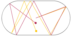 - ↑ Tabachnikov, Serge (2005), Geometry and Billiards, ISBN 978-0-8218-3919-5, Providence, R.I.: American Mathematical Society, pp. 36–40, seção 2.1
