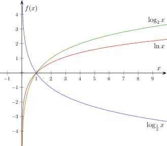 A única solução x é o logaritmo de y na base b, logb(y). A função que atribui a y o seu logaritmo é chamada de função logarítmica ou, simplesmente, logaritmo. A função logb(x) é essencialmente caracterizada pela fórmula do produto:[86]