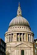 O Grande Incêndio de Londres começou em 1666 em Pudding Lane e rapidamente varreu as construções de madeira da cidade.[51] A reconstrução levou mais de dez anos e foi supervisionado por Robert Hooke.[52][53] Em 1708, a obra-prima de Christopher Wren, a Catedral de São Paulo, foi concluída. Durante a era georgiana novos distritos, como Mayfair, foram formados no oeste e novas pontes sobre o rio Tâmisa incentivaram o desenvolvimento no sul de Londres. No leste, o porto de Londres se expandia.[54]