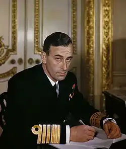 Sua experiência na região e particularmente suas simpatias com o Partido Trabalhista fizeram com que o primeiro-ministro Clement Attlee o apontasse Vice-Rei da Índia, depois da Segunda Guerra.[15][16] Mountbatten supervisionou a concessão da independência para um Índia dividida entre Índia e Paquistão (nos anos seguintes, a Índia pré-independência com frequência era chamada de "Índia Britânica". Antes da divisão e da independência, a "Índia Britânica" referia-se àquelas partes da Índia que eram diretamente administradas pelos britânicos; em oposição àquelas porções da Índia pré-independência que estavam sob controle de príncipes indianos).[17]