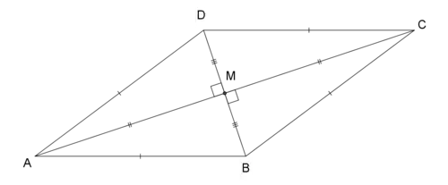 Vamos demonstrar que se um quadrilátero é um losango, então ele é tem as diagonais perpendiculares.