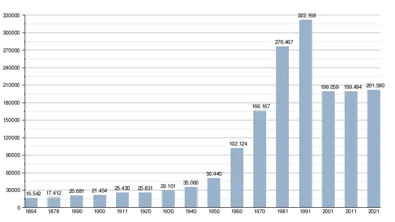 | 1900 | 1911 | 1920 | 1930 | 1940 | 1950 | 1960 | 1970 | 1981 | 1991 | 2001 | 2011 | 2021 | |
