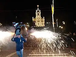 Um dos costumes tradicionais desta festa é a “vaca de fogo”, que representa um bovino corpulento de madeira carregado por populares. Dentro da vaca de madeira, vai uma pessoa que lança “bichas de rabiar” provocando cenas hilariantes. Apesar de ser uma tradição deste município, foi proibida por ação judicial preventiva face a danos provocados num cidadão que interpôs um processo à Comissão de Festas, culminando com uma dura fiscalização por parte da GNR em 2016 o que levou a inúmeras manifestações populares.