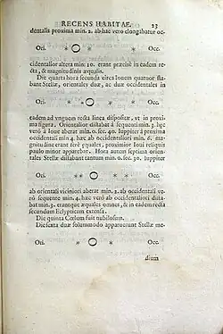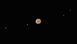 Como resultado das melhorias que Galileo Galilei fez no telescópio, com uma capacidade de aumento de 20×, [6] ele foi capaz de ver os corpos celestes de forma mais distinta do que era possível anteriormente.[6] Isso permitiu a Galileu observar em dezembro de 1609 ou janeiro de 1610 o que veio a ser conhecido como as luas galileanas.[3][7]
