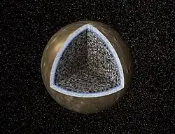 17. 1 2 3 Canup, Robin M.; Ward, William R. (30 de dezembro de 2008). Origin of Europa and the Galilean Satellites. [S.l.]: University of Arizona Press. p. 59. Bibcode:2009euro.book...59C. ISBN 978-0-8165-2844-8. arXiv:0812.4995Acessível livremente