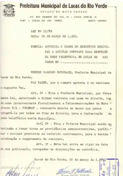- ↑ Câmera de Lucas do Rio Verde (21 de março de 1997). «CRIA NO MUNICÍPIO DE LUCAS DO RIO VERDE O CONSELHO COMUNITÁRIO DE SEGURANÇA E DÁ OUTRAS PROVIDÊNCIAS.». Câmera. Consultado em 10 de junho de 2016