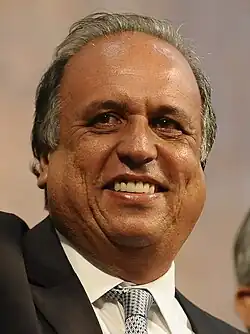![]() Pezão em posse para o segundo mandato como Governador do Rio de Janeiro, em 2015. | |