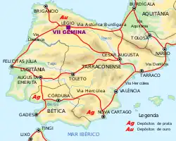 | Fronteiras (províncias): | Sudeste: Bética Norte: Galécia Nordeste: Tarraconense |