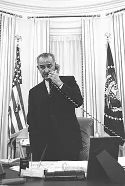 Lyndon Baines Johnson (Stonewall, 27 de agosto de 1908 – Stonewall, 22 de janeiro de 1973), conhecido comumente como LBJ, foi um político norte-americano e o 36º presidente dos Estados Unidos, cargo que assumiu após servir como o 37º vice-presidente dos Estados Unidos. É uma das quatro pessoas[1] que ocuparam os quatro cargos federais mais elevados por eleição nos Estados Unidos: representante, senador, vice-presidente e presidente.[2] Membro do Partido Democrata do Texas, Johnson fez parte da Câmara dos Representantes entre 1937–1949 e do Senado entre 1949–1961. Após não ter conseguido a indicação para presidente em 1960, recebeu a oferta de John F. Kennedy para ser seu running mate na eleição de 1960.