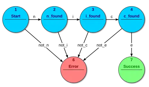 Fig. 3 FSM aceitador: analisando a palavra "nice"
