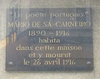 Mário de Sá-Carneiro (São Julião, Lisboa, 19 de maio de 1890 – Paris, 26 de abril de 1916) foi um poeta, contista e ficcionista português, um dos grandes expoentes do modernismo em Portugal e um dos mais reputados membros da Geração d'Orpheu.[carece de fontes]