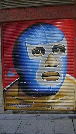Um exemplo interessante de máscara esportiva que confunde a função protetora é a máscara de luta livre, uma máscara mais usada no estilo mexicano/latino lucha libre de luta livre. Na lucha libre moderna, as máscaras são coloridas para evocar as imagens de animais, deuses, heróis antigos e outros arquétipos. A máscara é considerada "sagrada" até certo ponto, colocando seu papel mais próximo da função ritual e performática.