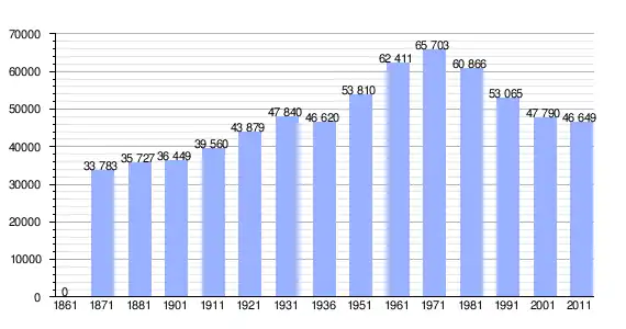 | Variação demográfica do município entre 1861 e 2011[3] |