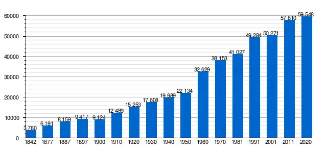 Segundo os dados oficiais, do Instituto Nacional de Estatística, em 2020 o município tinha 59 548 habitantes, o que corresponde a uma densidade populacional de 68,8 hab./km².[23] Desde 2000 que se regista um crescimento demográfico sustentado. A cidade ganhou 6 649 habitantes entre 2000 e 2010, correspondente a 13,1 % e a uma média de quase 800 pessoas por ano. Boa parte deste incremento populacional deveu-se ao aumento da natalidade, especialmente notável entre 2006 e 2010.[24] Após ter-se registado uma descida quase imperceptível da população entre 2013 e 2015, o crescimento foi retomado, mas a uma taxa muito mais baixa.[23]