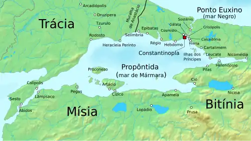 Província da Helesponto num mapa da Diocese da Ásia (c. 400)