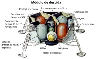O Módulo Lunar era formado por duas partes: módulo de descida e módulo de ascensão. O módulo de descida era responsável pelo pouso na Lua, já o módulo de ascensão permitia o retorno à órbita lunar para o rendez-vous com o Módulo de Comando e Serviço Apollo, que era o veículo de retorno para a Terra.[3]