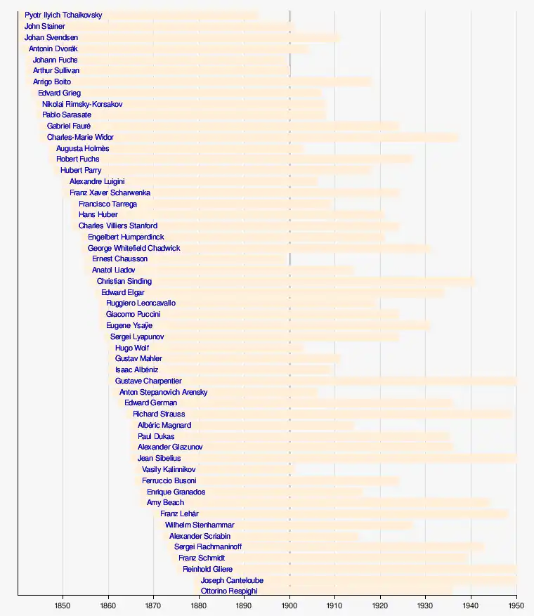 Esta é uma linha do tempo com os principais e mais influentes compositores românticos tardios.