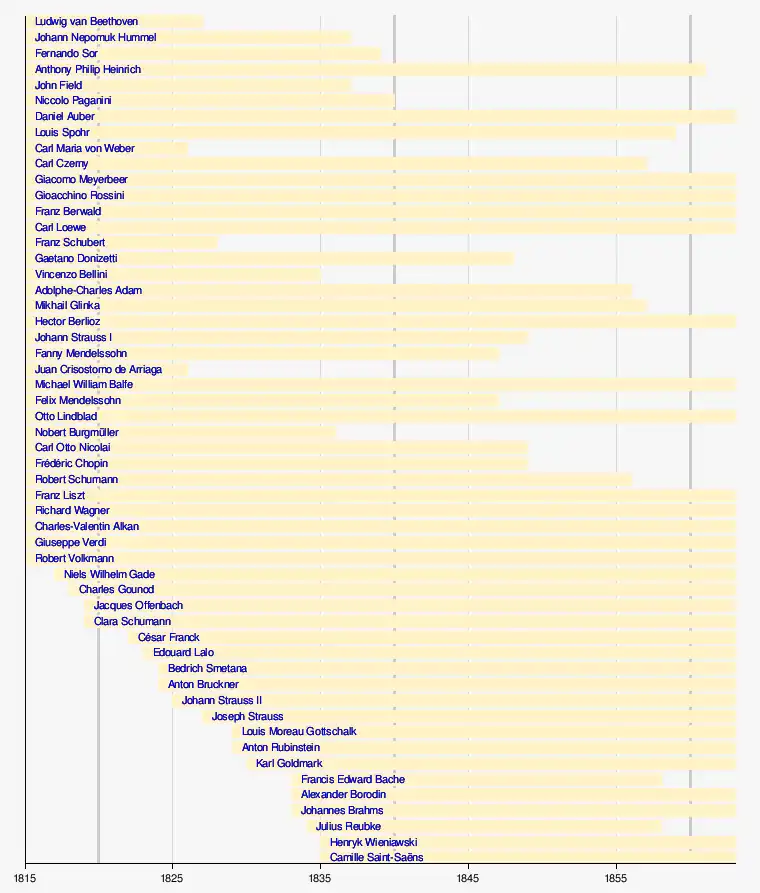 Esta é uma linha do tempo com os principais e mais influentes compositores românticos.