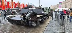 As primeiras imagens de um M1A1 em uso na Ucrânia apareceram em novembro de 2023, mostrando o blindado perto da cidade de Kupiansk.[63][64] Entre fevereiro e julho de 2024, a Ucrânia já havia perdido cerca de dez dos trinta e um tanques Abrams que receberam,[65] incluindo um que foi capturado pela Rússia e exibido como troféu de guerra em Moscou em maio de 2024.[66] Em abril de 2024, autoridades do Pentágono relataram que os Abrams da Ucrânia haviam sido retirados de serviço de linha de frente temporariamente. O uso russo de drones hunter killer tornou "muito difícil" operar os tanques no campo de batalha atual[67] com "solo lamacento dificultando a manobrabilidade".[68]