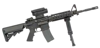 A carabina M4 é amplamente usada pelas Forças Armadas dos Estados Unidos e está substituindo em grande parte o rifle M16 nas unidades de combate do Exército dos Estados Unidos e do Corpo de Fuzileiros Navais dos Estados Unidos como a principal arma de infantaria[3][4] e rifle de serviço.