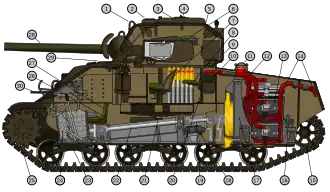 - ↑ Zaloga, Steven J. (2008). Armored Thunderbolt: The U.S. Army Sherman in World War II (em inglês) 1.ª ed. Mechanicsburg, Pennsylvania: Stackpole Books. p. 2-3. ISBN 978-0811704243