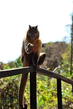 - 1 2 Brown, A. D., & Zunino, G. E. (1990). «Dietary variability in Cebus apella in extreme habitats: evidence for adaptability». Folia Primatologica. 54 (3-4): 187-195. doi:10.1159/000156443