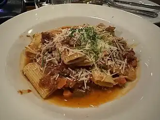 Macarrão (em italiano plural: maccheroni, singular: maccherone[1]) é um tipo de massa alimentícia com o formato de tubos curtos, em que se incluem os penne e os cotovelos.[2] No entanto, em algumas regiões do Brasil, o termo "macarrão" é usado para se referir a qualquer tipo de massa alimentícia, desde o espaguete às letras e outras formas usadas em vários cozidos e sopas.[3]