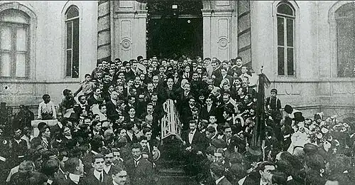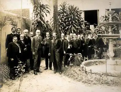 Inspirados na Academia Francesa, Medeiros e Albuquerque, Lúcio de Mendonça, e o grupo de intelectuais da Revista Brasileira idealizaram e fundaram, em 1897, junto ao entusiasmado e apoiador Machado de Assis, a Academia Brasileira de Letras, com o objetivo de cultuar a cultura brasileira e, principalmente, a literatura nacional.[92][93] Unanimemente, Machado de Assis foi eleito o primeiro presidente da Academia logo que ela se instalou, no dia 28 de janeiro do mesmo ano.[14]