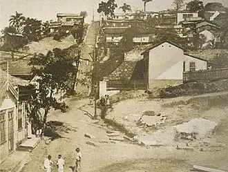 Machado de Assis nasceu em 21 de junho de 1839, no Morro do Livramento, no Rio de Janeiro, então capital do Império, em pleno Período Regencial.[32][33][34] Seu pai foi Francisco José de Assis, homem mulato pintor de paredes, filho de Francisco de Assis e Inácia Maria Rosa, ambos pardos.[35] A mãe foi a portuguesa Maria Leopoldina Machado da Câmara, branca, filha de Estêvão José Machado e Ana Rosa.[35] Os Machado haviam emigrado para o Brasil em 1815, oriundos da Ilha de São Miguel, no arquipélago português dos Açores.[33][36][37] Ambos os pais de Machado de Assis sabiam ler e escrever, fato incomum na sua época e classe social.[38] Ambos eram agregados de Dona Maria José de Mendonça Barroso Pereira, esposa do falecido senador Bento Barroso Pereira,[39] que abrigou seus pais e lhes permitiu morar junto com ela.[32][33]