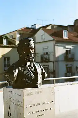 Joaquim Maria Machado de Assis (Rio de Janeiro, 21 de junho de 1839 – Rio de Janeiro, 29 de setembro de 1908) foi um escritor brasileiro, amplamente reconhecido por críticos, estudiosos, escritores e leitores como o maior expoente da literatura brasileira.[2][3][4][5][6] Sua produção literária abrangeu praticamente todos os gêneros, incluindo poesia, romance, crônica, dramaturgia, conto, folhetim, jornalismo e crítica literária.[7][8] Machado de Assis testemunhou a Abolição da Escravatura e a transição política do Brasil, com o golpe da proclamação da República em substituição ao Império, além de diversos eventos significativos no final do século XIX e início do século XX, sendo um notável comentador e relator dos acontecimentos político-sociais de sua época.[9]