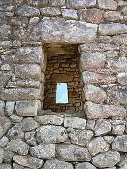 - As paredes interiores de boa parte das construções têm nichos em forma trapezoidal, junto às janelas. Blocos cilíndricos ou retangulares sobressaem com frequência dos muros como grandes varandas, dispostos em forma simétrica com os nichos, quando existentes.