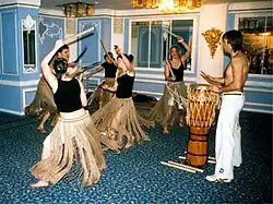 ![]() Apresentação de maculelê com vestimentas tipicamente indígenas. | |