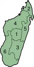 Madagáscar divide-se em seis províncias, subdivididas em 148 departamentos. As províncias têm o nome da respetiva capital. São: