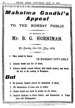 Apelo de Gandhi ao povo de Bombaim, publicado em 1919 no semanário "Índia Jovem" ("Young India").