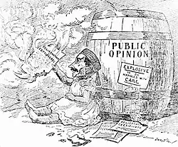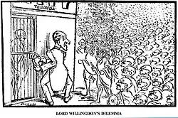 Caricatura de Gandhi representando o potencial explosivo junto à opinião pública mundial de sua desobediência civil contra o registro imposto pelo governo sul-africano.