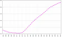 | • Estimativa para 2020 | 452 542[2] hab. (171.º) |