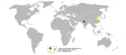 Os principais países produtores de mamona são a Índia (74%), a China (13%), o Brasil (6,1%) e Moçambique (2,5%) (2011, FAO), sendo os principais consumidores China, Estados Unidos, França, Alemanha e Japão. No Brasil a produção está concentrada no Estado da Bahia (67%), seguida do Ceará (15%), Minas Gerais (11%) e Pernambuco (3%).