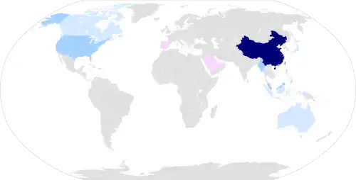 Falado(a) em:  China,  Hong Kong, Macau, Singapura Singapura, Taiwan,  Malásia, Myanmar Myanmar, entre outros