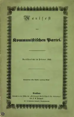 O Manifesto comunista (Das Kommunistische Manifest), originalmente denominado Manifesto do Partido comunista (em alemão: Manifest der Kommunistischen Partei), publicado pela primeira vez em 21 de fevereiro de 1848, é historicamente um dos tratados políticos de maior influência mundial. Comissionado pela Liga dos Comunistas e escrito pelos teóricos fundadores do socialismo científico Karl Marx e Friedrich Engels, expressa o programa e propósitos da Liga.