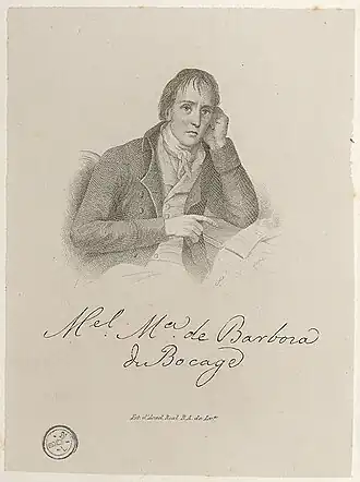 Manuel Maria Barbosa l'Hedois du Bocage (Setúbal, 15 de setembro de 1765 – Lisboa, Mercês, 21 de dezembro de 1805) foi um poeta nacional português e, possivelmente, o maior representante do arcadismo lusitano. Embora ícone deste movimento literário, é uma figura inserida num período de transição do estilo clássico para o estilo romântico que terá forte presença na literatura portuguesa do século XIX.[carece de fontes] Era primo em terceiro grau do zoólogo José Vicente Barbosa du Bocage.[1][2]