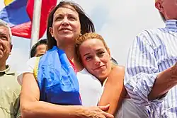María Corina Machado Parisca (Caracas, 7 de outubro de 1967[1]) é uma engenheira industrial, professora e política venezuelana. Serviu como deputada da Assembleia Nacional da Venezuela entre 2011 e 2014, quando teve seu mandato cassado pela mesa diretora da Assembleia Nacional da Venezuela, comandada na época por Diosdado Cabello.[2] Foi também fundadora, juntamente com Alejandro Plaz,[3] vice-presidente e presidente da Súmate,[4] e do Soy Venezuela, uma organização civil de oposição e resistência ao governo do ditador Nicolás Maduro.