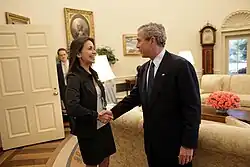 - ↑ «O Presidente George W. Bush recebe Maria Corina Machado» (Nota de imprensa). A Casa Branca. Maio de 2005. Consultado em 18 de agosto de 2006