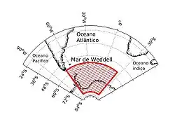 Os limites do Mar de Weddell vão de 60ºW a 20ºE com limite ao norte em 60ºS, dentro do Oceano Antártico sendo o Mar que contém a maior variação do gelo marinho ao longo de seus limites.