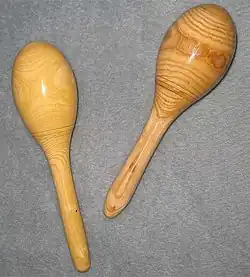 Chocalhos feitos de cabaças do gênero Lagenaria são agitadas segurando seu corpo natural, enquanto os frutos arredondados da Crescentia calabash são fixados em um cabo.[6] As bolas das maracas modernas são feitas de couro, madeira ou plástico[7] com um cabo de madeira inserido por um orifício na carcaça para servir de haste.[5] Cabelo humano às vezes é afixado na parte superior, e uma fenda é cortada para representar uma boca, por meio da qual seus pajés (payés) fazem o instrumento emitir respostas. Algumas pedrinhas são colocadas dentro para produzir o som e o instrumento é coroado com penas vermelhas de guarás (íbis-escarlate). Era usado em suas danças e para curar os enfermos.[8] O design pode variar conforme a região; por exemplo, em Porto Rico, as maracas são feitas do fruto da higuera,[3] enquanto em outras áreas são feitas de lata, madeira, couro ou materiais sintéticos.[5] O conteúdo interno e os materiais afetam o timbre e o volume do instrumento. Curandeiros andinos utilizam maracas em seus rituais de cura.[9]