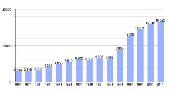 | Variação demográfica do município entre 1861 e 2011[3] |
