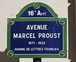 - ↑ «Les rues de Paris | avenue Marcel-Proust | 16ème arrondissement». parisrues.com. Consultado em 21 de outubro de 2020.