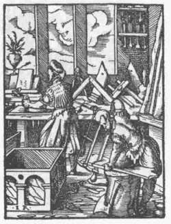 A marcenaria surgiu da carpintaria, ramo do especialista em trabalhos com madeira em estado bruto ou maciço (em estado natural),[3] com a função de beneficiar a madeira em peças para uso em construções.[3] Nos dias atuais, o marceneiro costuma utilizar laminados industrializados de madeira, como: compensado, aglomerado, MDF, fórmica e folhas de madeira.[1]